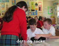 ![]() It is generally cheaper to buy clothes than to make clothes and “ready to serve”, microwave food is a part of life. Technology allows even children to own what would once have been “little miracles” mobile phones, etc. Because of this many every day crafts and skills lave been forgotten or lost, no longer needed and yet many people, children included, value hand made items and love to learn interesting craft skills. The class from The Glen school discovered how to make butter in a hand churn. The Gael Scoil were shown how to darn a sock and how to make a rug from old rags. Click here to see how to make rushlights. Click here to see how to make a rag rug Click here to see how to darn socks click here to see how to churn butter Click here for the photopage The children also thought about what skills they had and skills that they would like to learn. Click here for a page from the project book. |