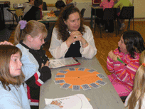 Finding Maths puzzles and investigations for groups to share is not difficult. There are many to be found on children's Mathematics sites on the net or in books. I offer a few of my own on this site and will recommend some useful sites on the links page. Presenting them in a creative and imaginative manner is real added value. Drama can help you here.