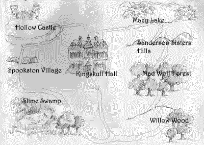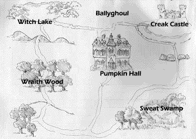 Now, turn left for Pumpkin Hall. If you go too far you will reach Wraith Wood, and we wouldn't wish to loose you. If you do go on to Witch Lake, you will find that it is a very peaceful lake. People stay there forever.
