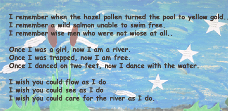 The girls created a poem in three sections in the words of Sinann. The first three lines began