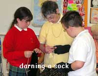 ![]() It is generally cheaper to buy clothes than to make clothes and “ready to serve”, microwave food is a part of life. Technology allows even children to own what would once have been “little miracles” mobile phones, etc. Because of this many every day crafts and skills lave been forgotten or lost, no longer needed and yet many people, children included, value hand made items and love to learn interesting craft skills. The class from The Glen school discovered how to make butter in a hand churn. The Gael Scoil were shown how to darn a sock and how to make a rug from old rags. Click here to see how to make rushlights. Click here to see how to make a rag rug Click here to see how to darn socks click here to see how to churn butter Click here for the photopage The children also thought about what skills they had and skills that they would like to learn. Click here for a page from the project book. |