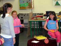 Finding Maths puzzles and investigations for groups to share is not difficult. There are many to be found on children's Mathematics sites on the net or in books. I offer a few of my own on this site and will recommend some useful sites on the links page. Presenting them in a creative and imaginative manner is real added value. Drama can help you here.